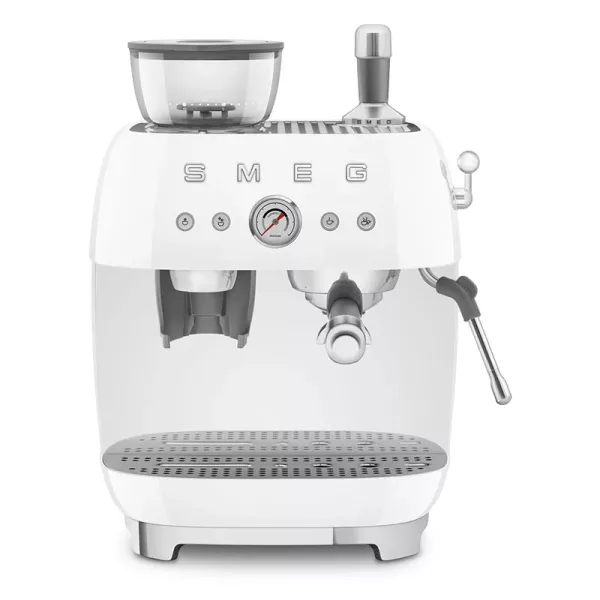 اسپرسوساز اسمگ رنگ سفید مدل EGF03 با بدنهای مقاوم و زیبا به رنگ سفید، جلوهای شیک و مدرن به آشپزخانه شما میبخشد و ترکیبی از کیفیت ساخت ایتالیایی و عملکرد حرفهای را ارائه میکند.