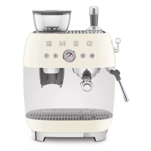 آسیاب قهوه داخلی در اسپرسوساز اسمگ رنگ کرم مدل EGF03؛ کلید طلایی برای تجربه طعم واقعی و بینظیر اسپرسو